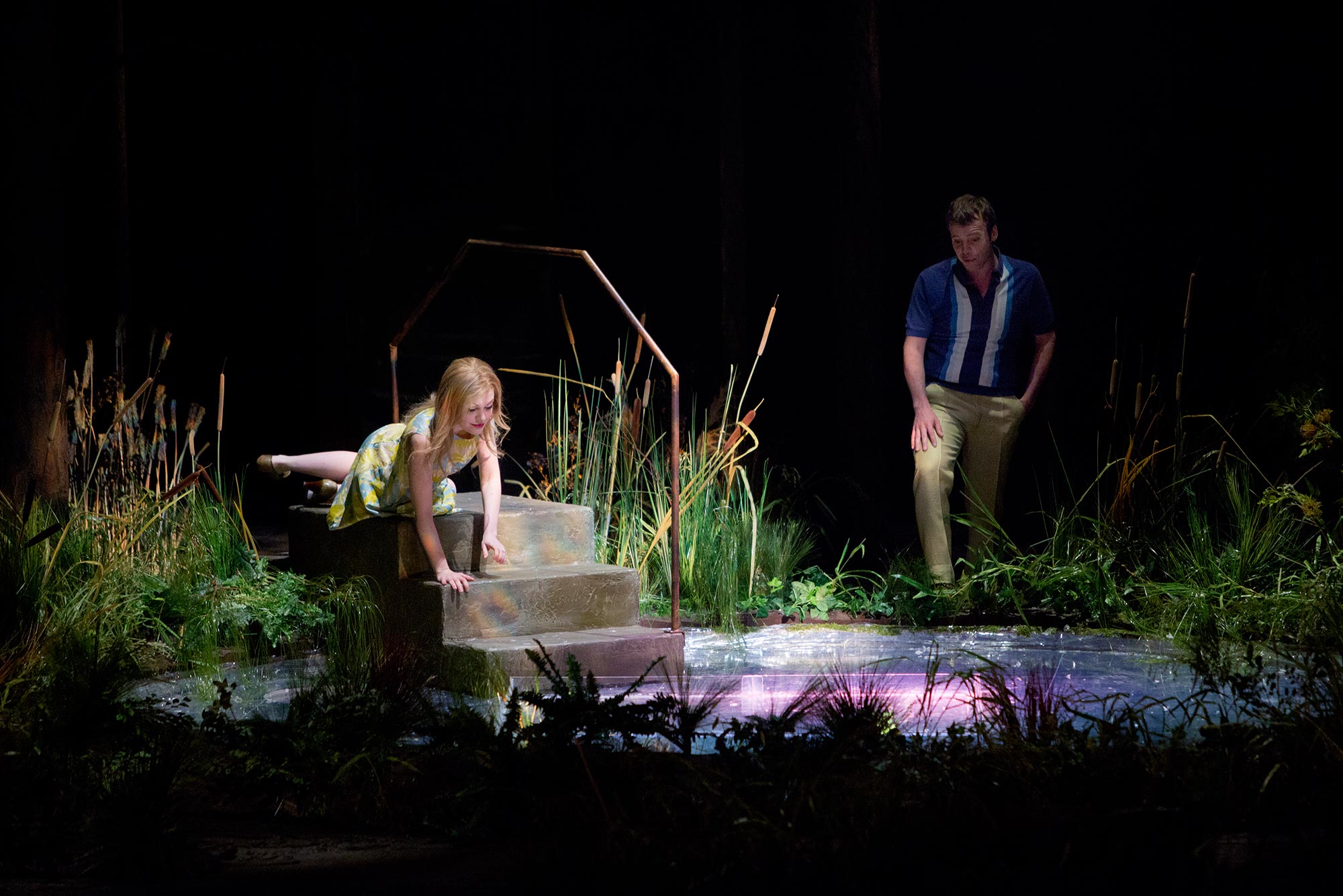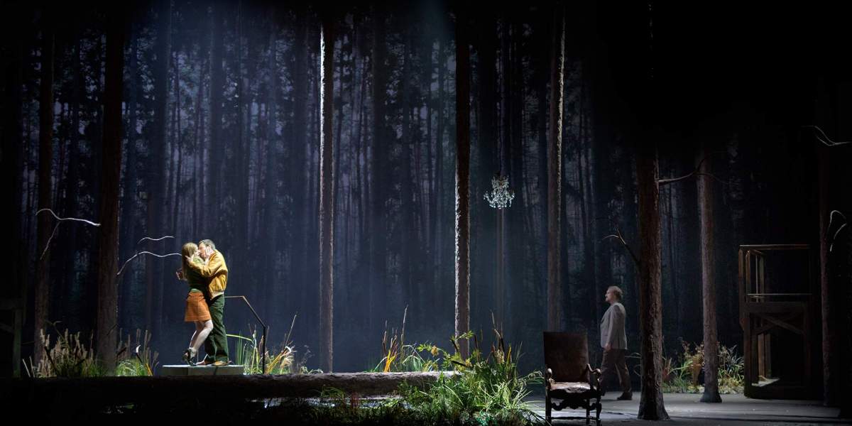 Det lyriska dramat, fullt av poetiska antydningar, eteriska visioner och mystiska figurer utspelas där ljuset inte riktigt tränger in. När regissör Benjamin Lazar och scenograf Adeline Caron skapade scenografin har de låtit sig inspireras av Tarkovskis film Stalker och arkitekten Frank Lloyd Wrights hus som flyter in i landskapet.