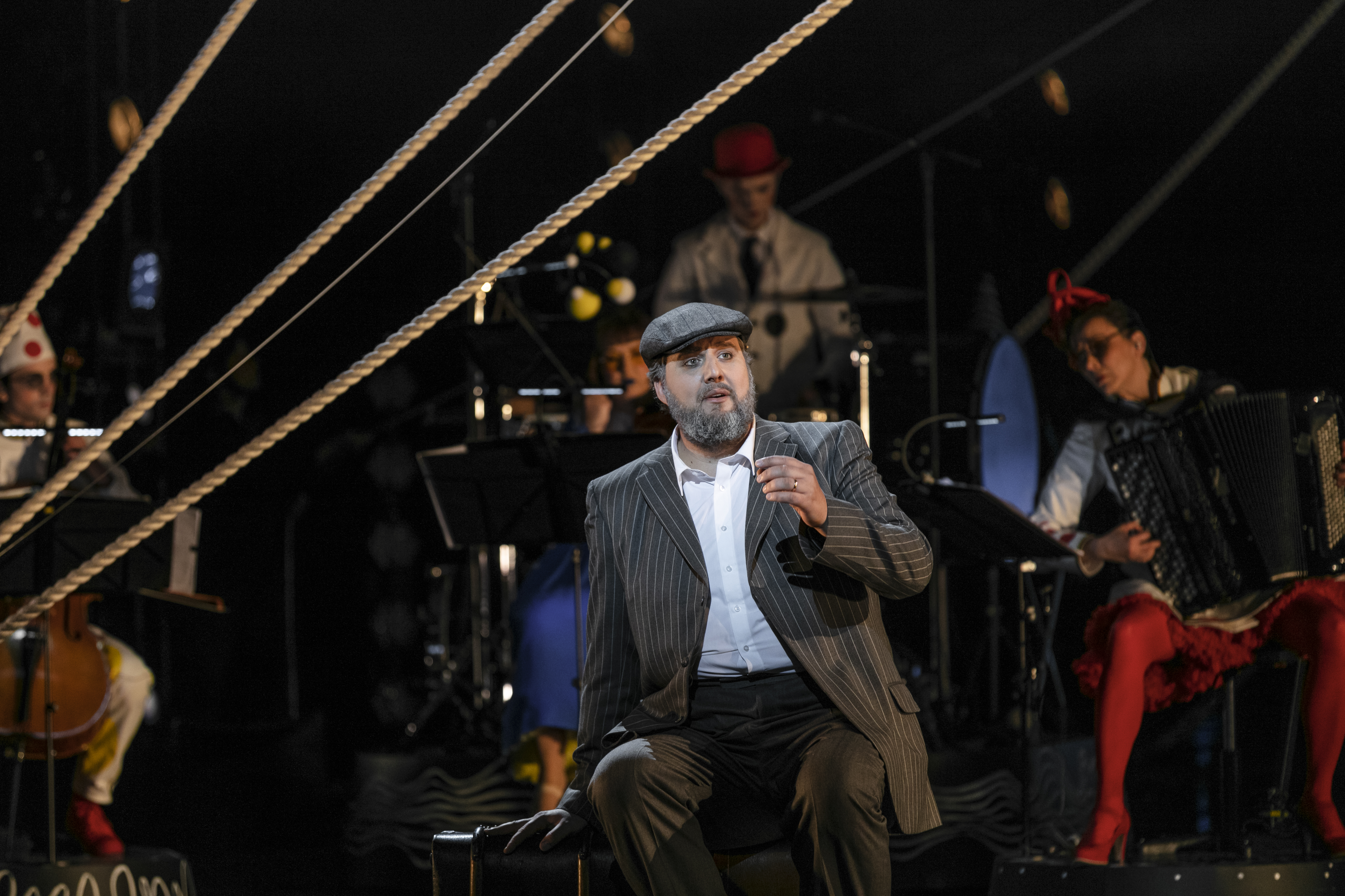 Viktor Nordliden, cello; Inga Zeppezauer, violin; Minna Weurlander, ackordeon; Mogador, eldest son of the Cristianis - Nikolas Pulka (i repet); Youngest son of the Cristianis - Andreas De Ryck (på händer); Martin Jönsson, bastrombon; Oscar Fransson, trumpet; Blagoj Lamnjov, klarinett; Sigvald Fersum, slagverk (i bakgrunden).