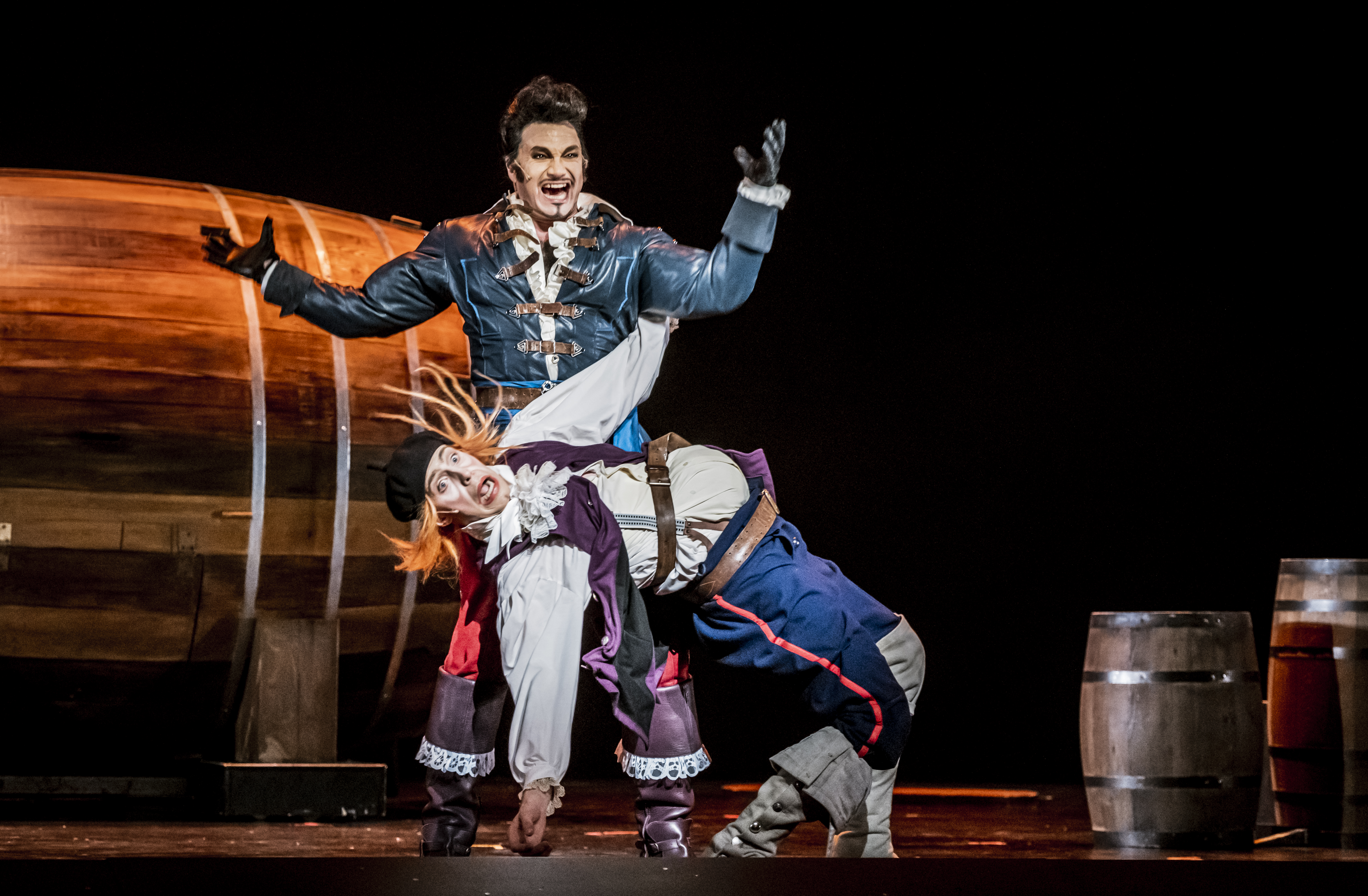 Gaston - John Martin Bengtsson; Lefou - Oscar Pierrou Lindén
