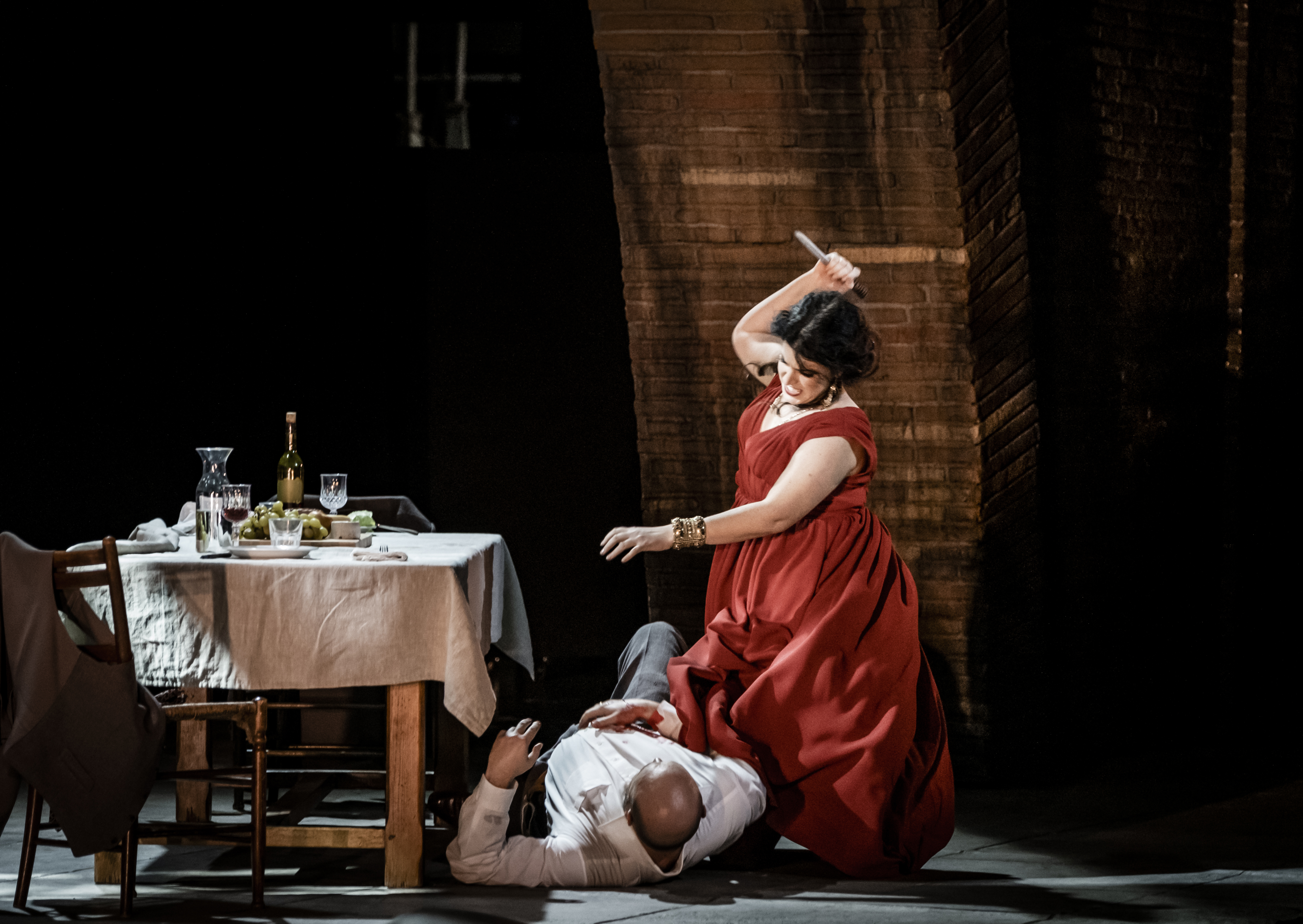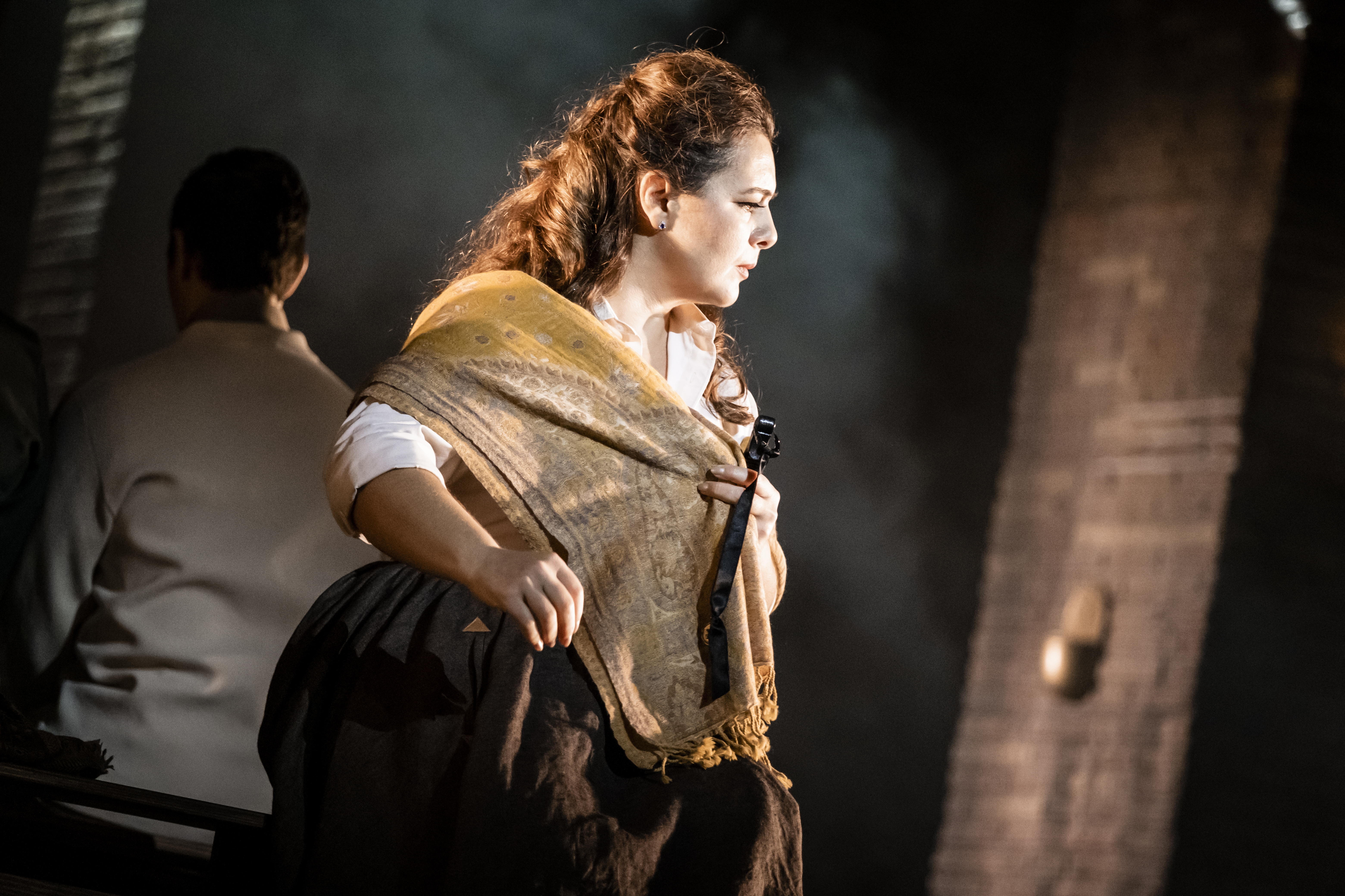 Scarpia - Vladislav Sulimsky (liggande); Tosca - Simge Büyükedes